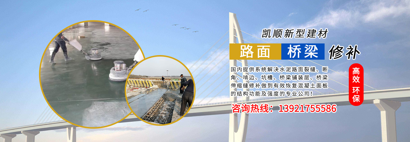 江蘇凱順新型建材有限公司是國內(nèi)提供系統(tǒng)解決水泥路面裂縫、斷角、啃邊、坑槽、橋梁鋪裝層、橋梁伸縮縫修補做到有效恢復(fù)混凝土面板的結(jié)構(gòu)功能及強度的專業(yè)公司!為市政工程、高速、國道、省道、縣鄉(xiāng)道路的改造及大修、中修等大型工程提供了快速、高效、環(huán)保、經(jīng)濟(jì)系統(tǒng)方案和技術(shù)支持!